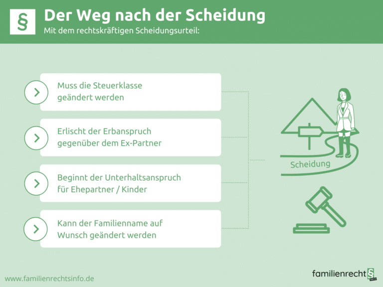 Sobald die Scheidung vollzogen wurde, wirkt sich dieser Stand auch auf alle anderen, wichtigen Aspekte der vorherigen Ehe aus. Gerade bei den Themen Steuern, Erbrecht sowie Sorgerecht und Unterhalt sollte man auf einige Dinge achten, da sich dort einiges ändern wird. Es ist zudem Ratsam, sich schon frühzeitig darüber Gedanken zu machen, was nach der Scheidung auf einen zukommt und wo Änderungen geschaffen werden müssen.
